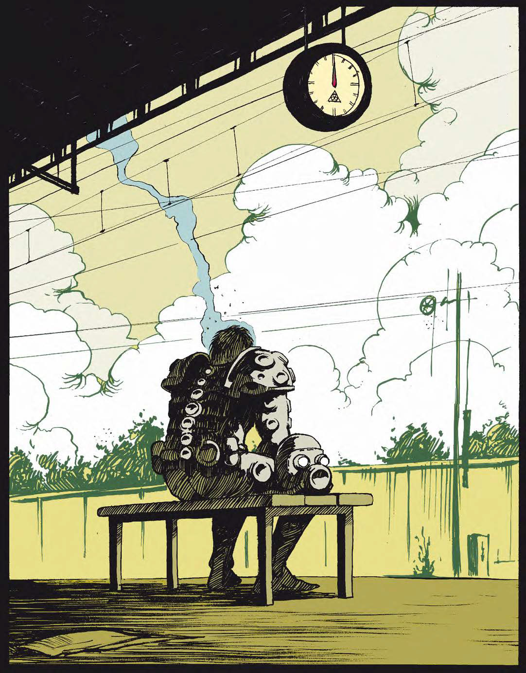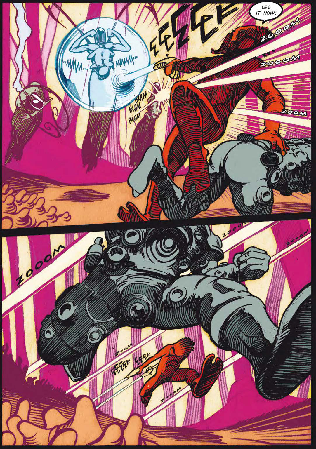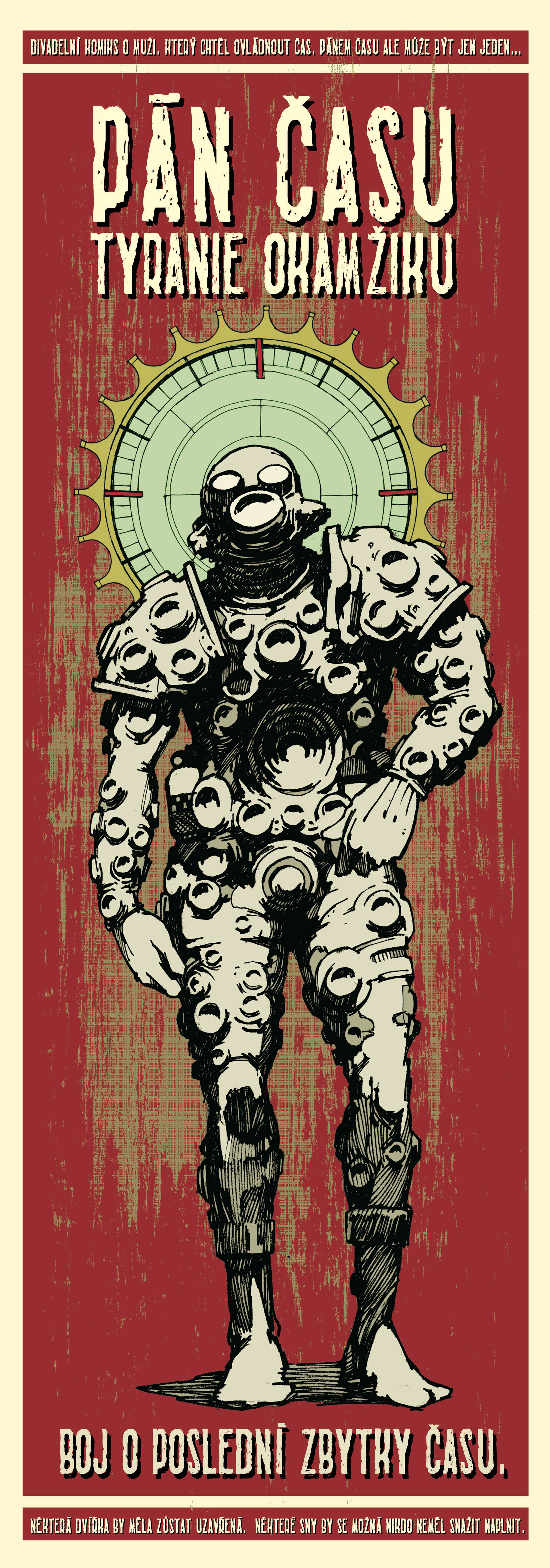 The journey of the Timemaster began in 2005, when Erlioz Ment and his experiments with time were first mentioned in the prologue to his story in Aargh! magazine," reads the introduction to the narrative publication. "Soon after, fresh news from the past leaked out in a booklet published by the Hura kolektiv association of friends of unified time. This black-and-white testimony to the astonishing existence of a bizarre life beneath the surface of our time level was, for two long years, the only record of the fate of the missing traveler Em. Only an analysis of his last days in our world, conducted using regressive theater therapy on the ship Tajemství, revealed a little about his fate. And now, after almost seven years in the unknown, the full-color record of the Timemaster's remarkable adventure comes to you.